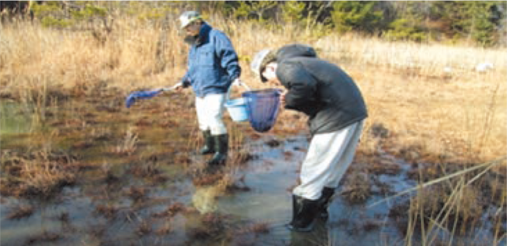 The Hagukumi no Mori Biotope Area in Shiga includes habitats for the Japanese rice fish (medaka, Oryzias latipes; Ministry of the Environment: Near Threatened Species Category II), dragonfly (brachytron anisopterum, Ministry of the Environment: Near Threatened), and the hyacinth orchid (bletilla striata; Ministry of the Environment: Near Threatened). Since 2023, initiatives have been underway to exterminate conditionally designated invasive alien species for the purpose of conserving these rare species and their habitats.