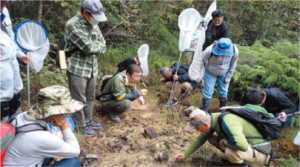 Scarlet dwarf dragonfly habitat/conservation candidate site search team with additional experts at Shiga Prefectural Kibougaoka Cultural Park