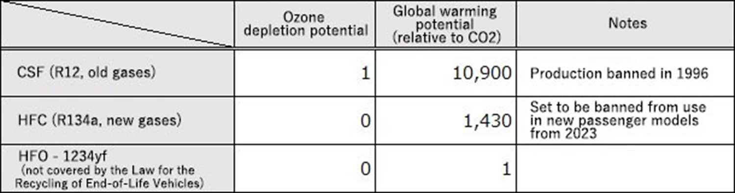 ■Characteristics of fluorocarbons used in vehicle air-conditioning systems