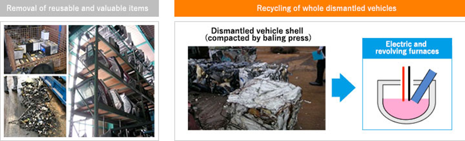 Going forward, Daihatsu will continue to promote the stable processing of end-of-life vehicles in compliance with the Law for the Recycling of End-of-Life Vehicles. We also work together with other automobile manufacturers and affiliated businesses to further develop recycling technologies, and to establish schemes to cater to the future spread of electrified vehicles.