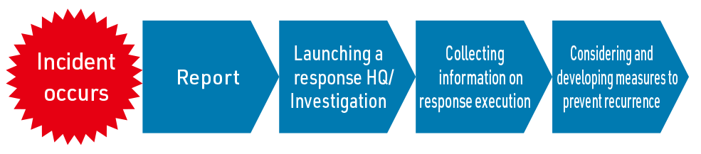 In the event of a major management crisis or emergency situation such as a disaster, Daihatsu establishes an emergency response task force to take appropriate measures to deal with the situation.