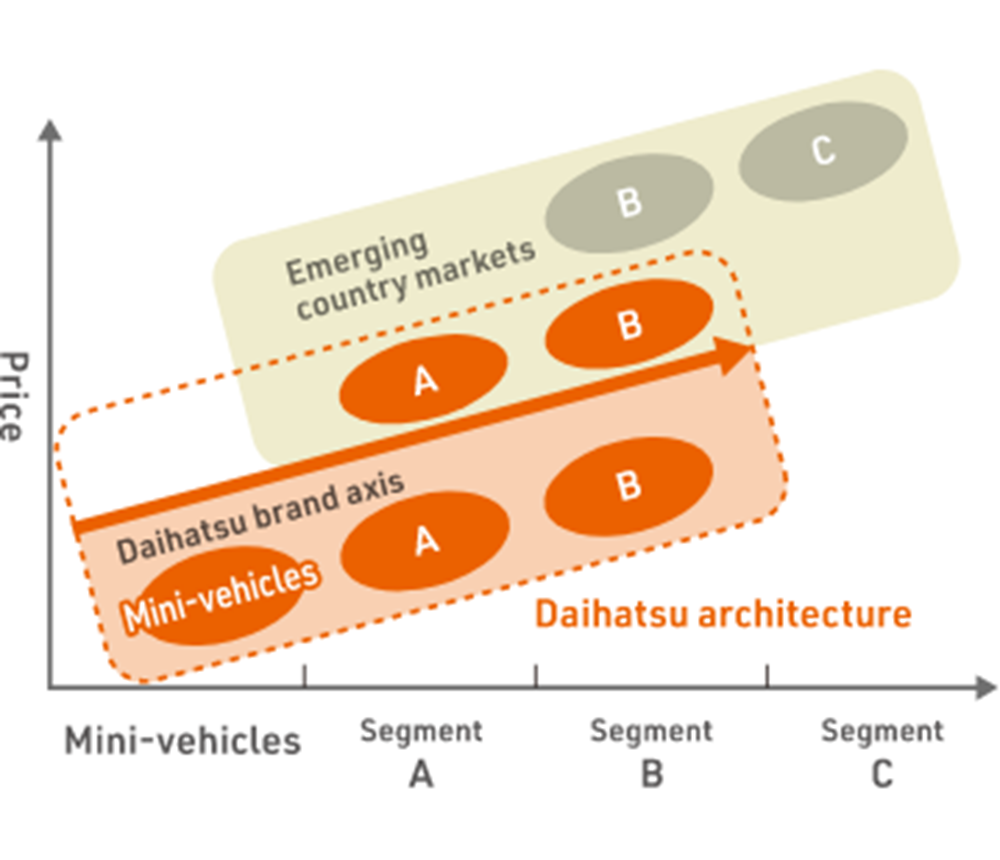 The Daihatsu New Global Architecture (DNGA) is a new method of creating cars intended to achieve these concepts. With the opinions of customers as our starting point, DNGA incorporates the business structures for carrying out Daihatsu’s unique car creating and the strategies for achieving this in all processes of car creating including planning, development, purchasing, and production. In the case of advanced technologies, such as electrification, automated driving, and connectivity, we will create sustainable compact mobility by developing automobiles based on common design concepts from segment A to segment B in markets in emerging countries, with mini-vehicles as the starting point.
