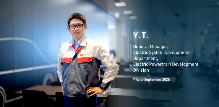 My division is responsible for the design and development of all electrical systems related to batteries, motors, and vehicle drive control. The Electric System Development Department also handles electrical systems for the e-SMART HYBRID and the e-SNEAKER personal mobility device provided at the Osaka Expo.
