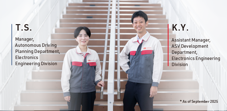 I was originally in the ASV Development Department that K.Y. is in, but now I work in the Autonomous Driving Planning Department on the advanced development of the next generation of Smart Assist and autonomous driving technology. In our work, we are always thinking about what features and functions customers need in their daily lives.