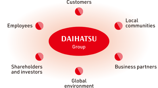 In order to supply to customers high-quality but affordable vehicles equipped with advanced technology, Daihatsu builds relationships based on trust and structures that enable stable procurement of parts, materials, and equipment while developing mutually beneficial relationships with business partners.