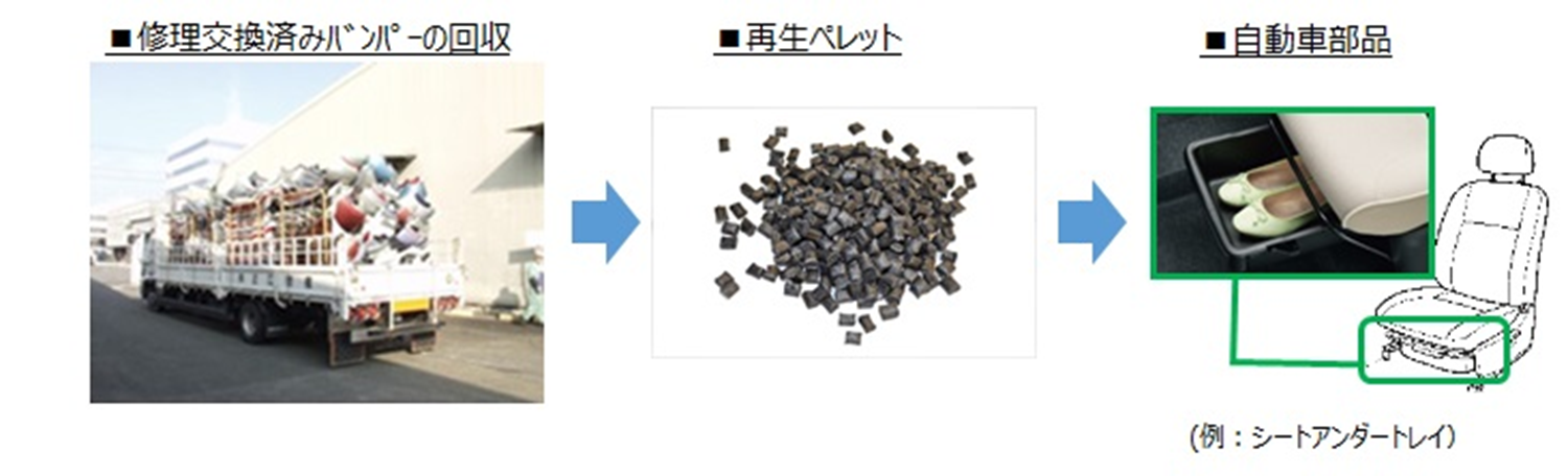2024年9月、ダイハツが加盟している一般社団法人 日本自動車工業会(自工会)が再生材等の供給・活用促進を目指した「2050年 長期ビジョンと中長期ロードマップ(含む自主目標値)」を策定、公表しました。ダイハツでは、2050年に向け2030年、2035年、2040年にそれぞれ設定された目標を着実に達成するため、再生プラスチックのより幅広い部品への使用拡大を図っています。