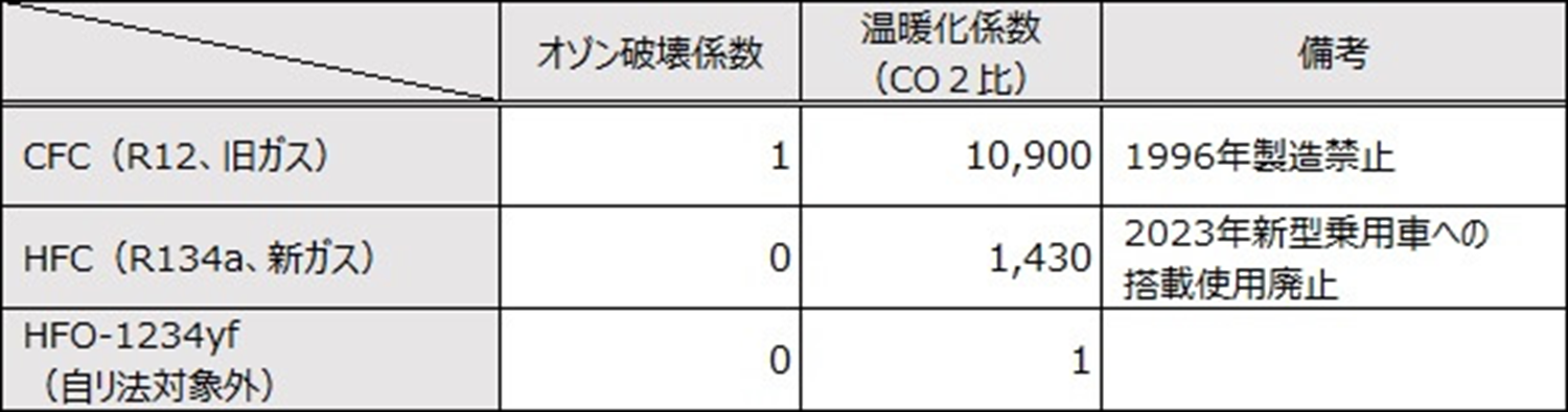 カーエアコンの冷媒として使用するフロン類については、 1994年より特定フロン(CFC)の使用を全廃し、代替フロン(HFC)へ切り替えています。さらに、すべての乗用車においては新冷媒HF0-1234yfを採用しました。