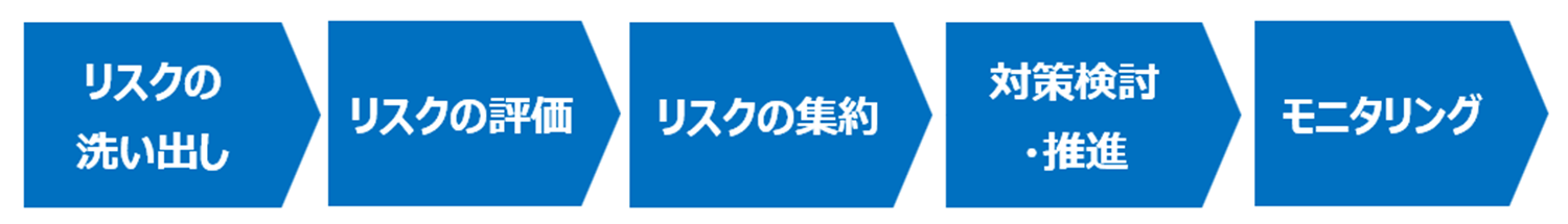 各部でのリスクの洗出しを行い、全社横断での分析と優先順位づけを行ったうえで重点管理するべきリスクを特定し、対策検討・推進します。また、特定したリスクはGRC委員会により定期的に進捗状況フォロー、モニタリングを行います。