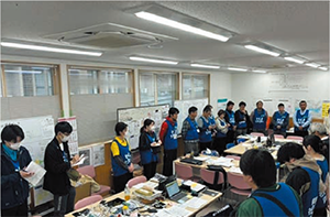 ダイハツグループ九州開発センターでは、災害時の避難所として施設提供を行っています。災害時は「公助・自助・共助」が大切とされますが、地域防災で「共助」の使命を果たしていきたいと考えています。2022年9月※、台風14号が福岡県久留米市に大きな被害をもたらしましたが、この時も地元校区の避難所として施設を提供し、76人の近隣住民の方々にご利用いただきました。施設の環境としても、1人当たりのスペース確保やプライバシー確保、空調などに配慮し、慣れない場所で不安な時間を過ごされる皆様をしっかりサポートしました。