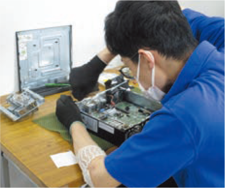 ダイハツ九州(株)では、2024年5月より、事業所の敷地内で不要となった小型家電などを近隣の福祉サービス事業所へ寄付し、希少金属を取り出して再利用していただく取組みを行っています。この取組みは資源のリサイクルに貢献するだけでなく、福祉サービス事業所で働く障がい者の就労支援にもつながっています。