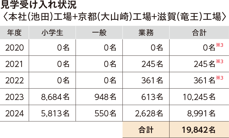 ※3 新型コロナウイルス感染拡大防止のため、見学中止期間あり