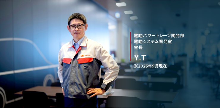 私の部署では、バッテリーやモーター、クルマの走行制御に関わる電動システム全体の設計・開発を行っています。「e-SMART HYBRID」や、大阪・関西万博に提供しているパーソナルモビリティ「e-SNEAKER」などの電動システムも、電動システム開発室で担当しています。