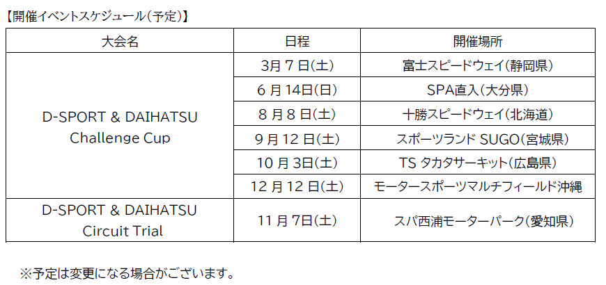 | イベントHP: | https://www.procrews.co.jp/daihatsu/ |