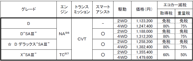 ・衝突回避支援システム「スマートアシストⅢ」を搭載。搭載車は政府が交通事故対策の一環として普及啓発している「セーフティ・サポートカーS※5」の「ワイド※5」に該当
