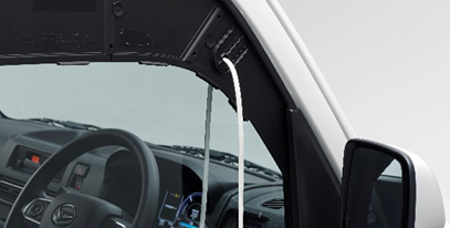 運転席前方にエンジン(モーター)ルームを持たない車体構造の軽貨物自動車として荷室長、荷室幅(4名乗車時)、荷室高でNo.1。2026年2月現在。ダイハツ調べ。自社および他社にも同数値の車があります。