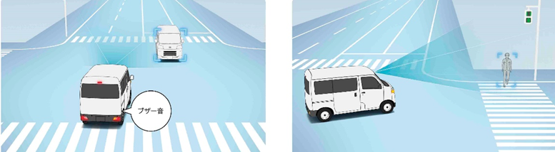 <右折時の対向車や右左折時の横断歩行者も認識可能>