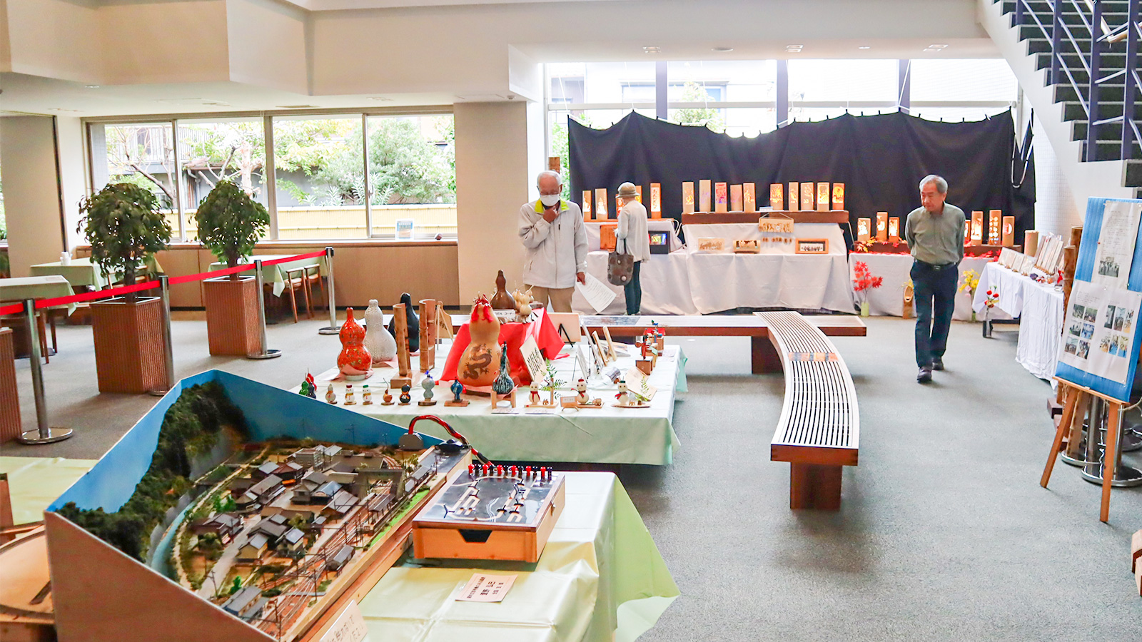今年の趣味の展示会は、現役社員の皆さんにも作品を見ていただきたいとの思いから、池田第1地区のD-Terraceで開催することになりました。