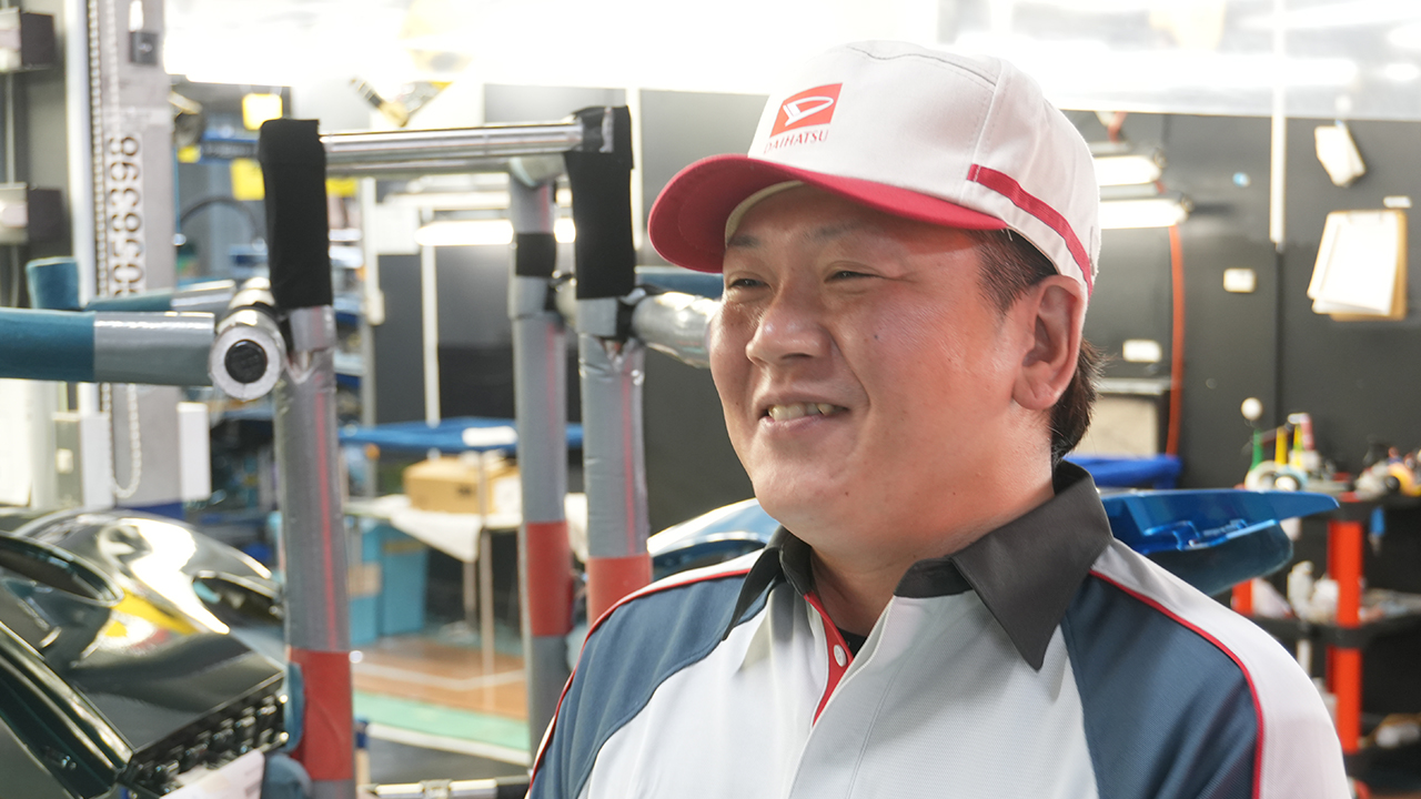(山本さん)私自身、補修作業※の経験が20年近くあるため、塗装の担当者に研ぎ方や塗り方のノウハウを惜しみなく伝えました。ダイハツが誇るコペンの塗装品質と相違ない自信があります!