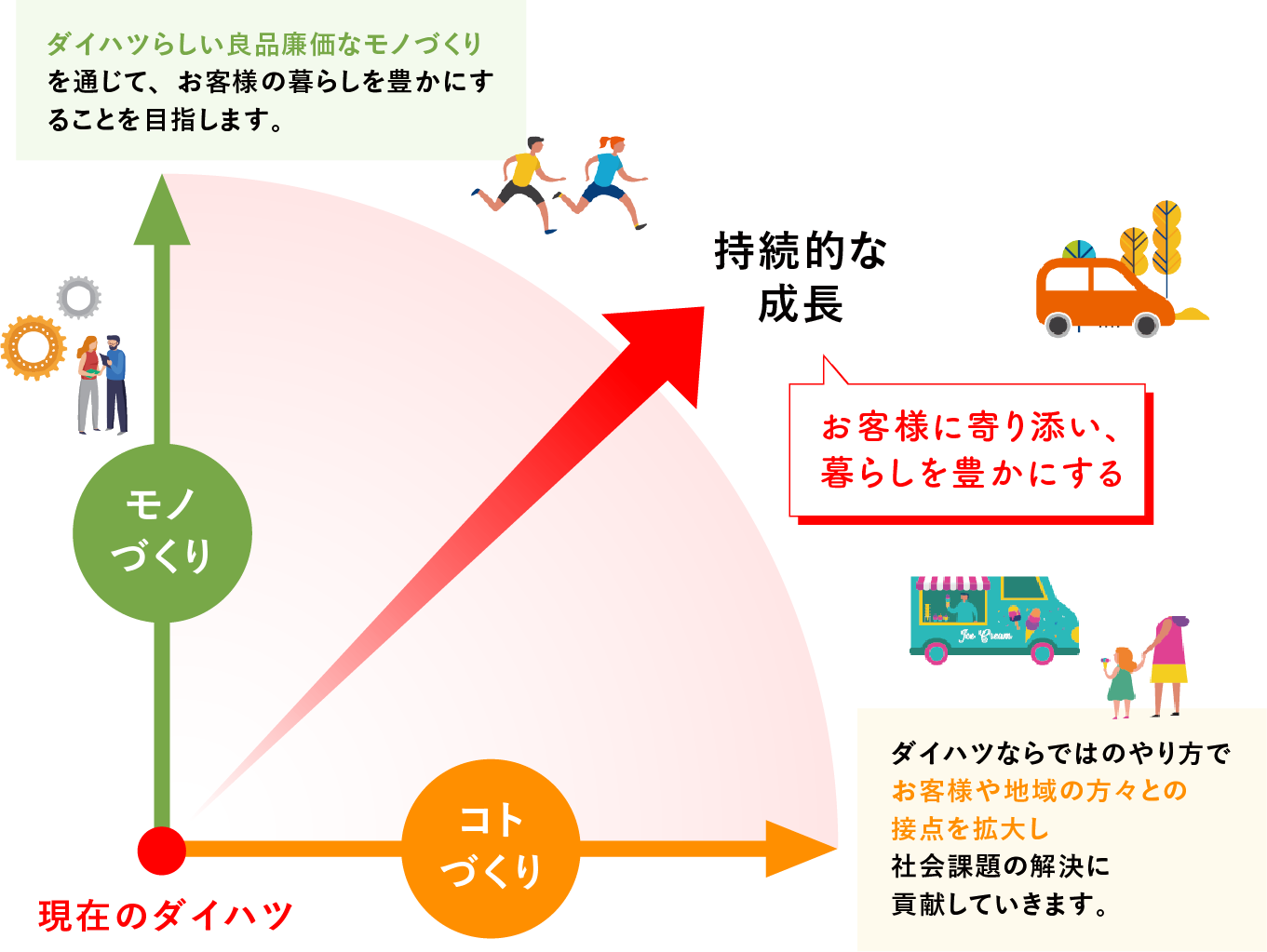 これからもダイハツは、それぞれの地域、お客様一人ひとりの生活に、真摯に向き合い、