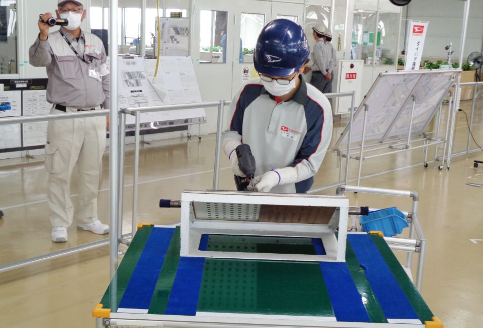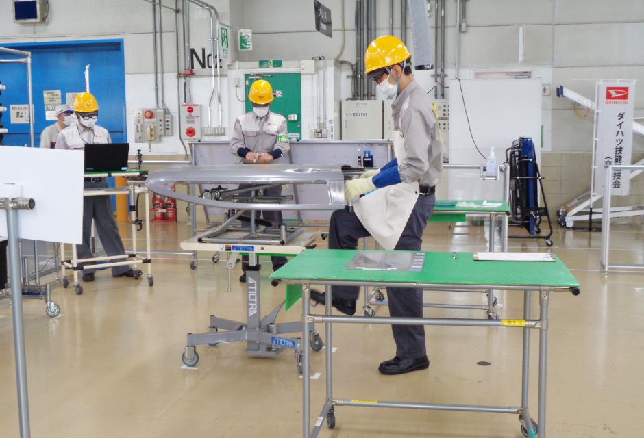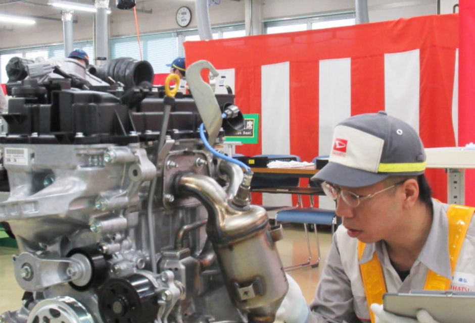 モノづくり技能の向上と伝承、若手技能士の人材育成、技能交流の場の提供を目的としたダイハツ工業独自の技能競技会を開催しています。日本国内だけではなく海外グループ会社からも参加し、12種の分野で技能を高め合っています。